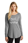"Made to Worship" long sleeved tunic. Purchase in either blush frost or grey frost.
